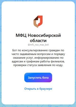 Ссылка на чат-бот МФЦ Новосибирской области в МАХ: https://max.ru/mfc_nso_max_bot